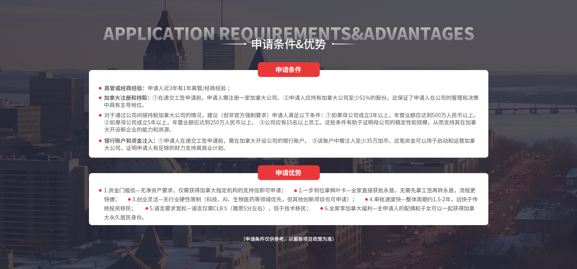 加拿大联邦创业移民旨在吸引外籍人士前往加拿大开公司带动当地经济同时创造就业岗位增加加拿大本地人的就业率。该项目目前对申请人没有雅思要求、没有学历要求,也不需要面试,只要你是个体户 、企业家、高管都可以办理加拿大联邦创业。加拿大联邦创业批复后,申请人拿到高管工签到加拿大运营公司半年以上,并雇员运营公司,从而申请加拿大永居身份。